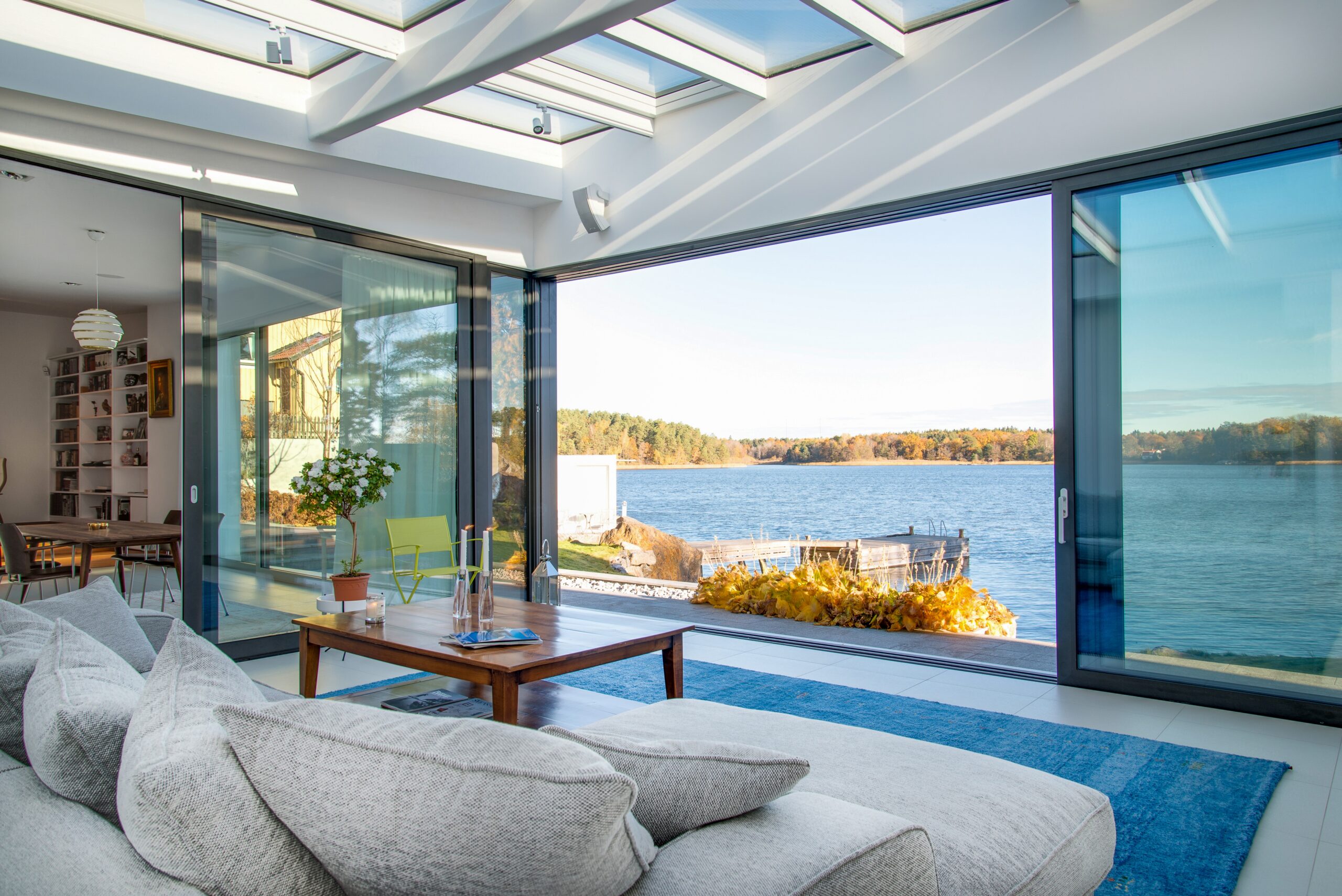 We completely reimagined the room, introducing a soft lake palette of whites, sand tones, and ocean blues. By opening up the floor plan, adding larger windows, and selecting light, modern furnishings, we transformed the space into a relaxing lake side retreat perfect for gatherings and everyday living.